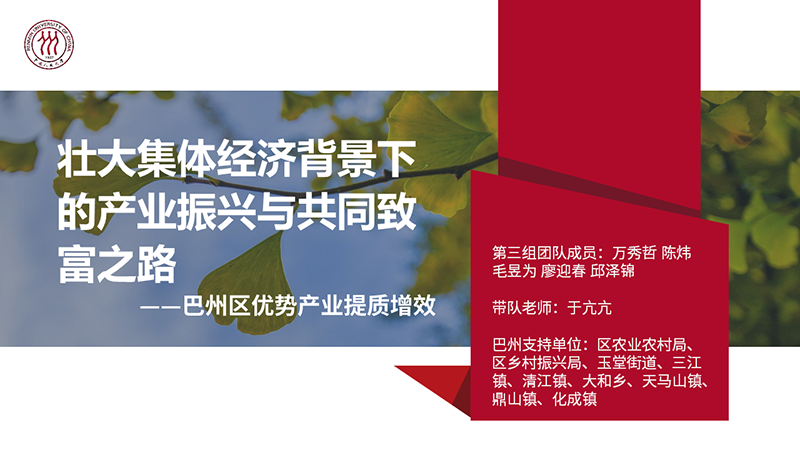 在2023年暑假临近尾声时,木瓜视频 组织2020级应用经济与区域发展管理双学位实验班26位本科三年级学生,奔赴四川省巴中市巴州区,开展了为期一周的专业实习活动。从市区街道到乡镇村落,从郁郁青山到广阔田野,农发学子遍履巴水河畔,用专业知识回应实践需要,讲好巴州大地上的乡村振兴故事。