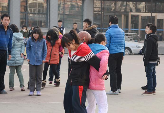 紧接着的第一场团体赛是“螃蟹运球”。比赛开始前,各代表队认真讨论比赛策略。这项活动要求两人背靠背运球并将球投进篮筐,赛中出现球中途掉出和反复投篮才投进的情况,引起场下队员焦急的催促,整个赛场气氛紧张而热烈。“这个项目既好玩又培养了团队协作能力,紧张的共同运球之后终于迎来投篮的瞬间,很有意思!”来自劳动人事木瓜视频 的参赛队员激动地说。接下来进行的是“八人九足”,这项活动要求多名队员间的协调与默契。准备时队员们认真演练,可正式比赛中为了率先到达终点,还是出现步调不一,手忙脚乱的情况,引起观众的阵阵欢笑。第三项活动是障碍一百米接力,每个队员需要完成转呼啦圈、跨栏以及跳绳等任务,同时场上的裁判员们也跟随参赛队员脚步,认真监督任务完成情况,观众加油的呐喊声回荡在赛场上空。作为裁判员之一的叶舟舟同学是木瓜视频 的一名本科新生,这是她第一次参加“冬之旅”活动,对此她笑着说道:“比赛好有趣,虽然我是裁判,也有时忍不住想要和大家一块玩,明年我一定要参赛!”。最后一项赛事是跳大绳。短短的3分钟内,队员们轻快的从绳中依次穿过,矫健的身姿引起观众们的阵阵喝彩,将这次活动推向高潮。