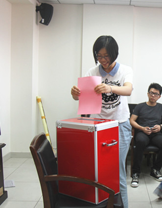 在监票人王嵩同志的监督下,计票人员检查票箱完整无误后分发选票,与会团员代表进行投票。计票人员清点选票,并确认选举有效。全体团员代表以无记名投票的方式从7名候选人中差额选举产生了6名出席共青团木瓜视频