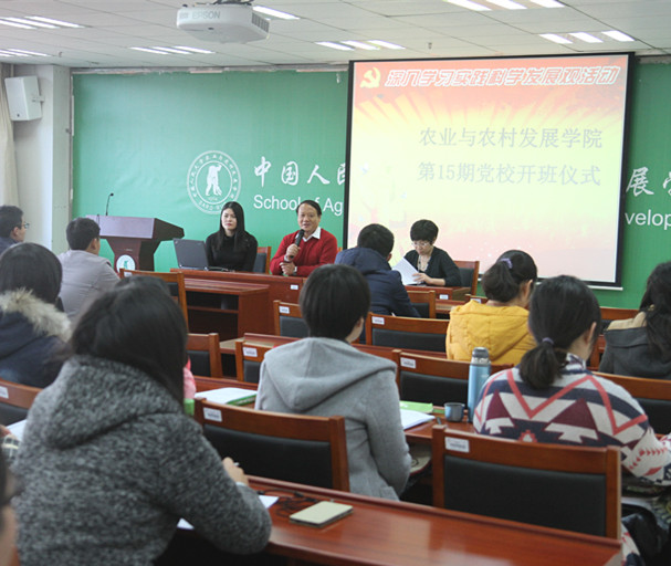 第十五期党校开班仪式暨首场报告会。院党委书记、院党校校长张利庠教授,院党委副书记、院党校副校长康琳老师,院党委办公室陈乙瑶老师参加会议。本期学员党校共有32名学员,其中本科生22名、研究生10名。