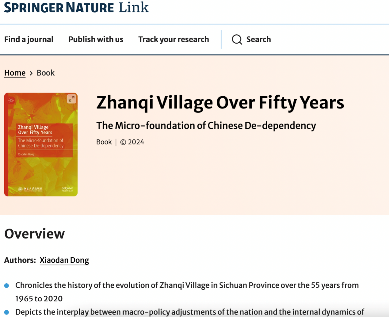木瓜视频 董筱丹副教授的学术著作《Zhanqi Village Over Fifty Years: The Micro-Foundation of Chinese De-dependency》近日由施普林格·自然(Springer Nature)出版集团旗下的帕尔格雷夫·麦克米伦(Palgrave Macmillan)正式出版发行。