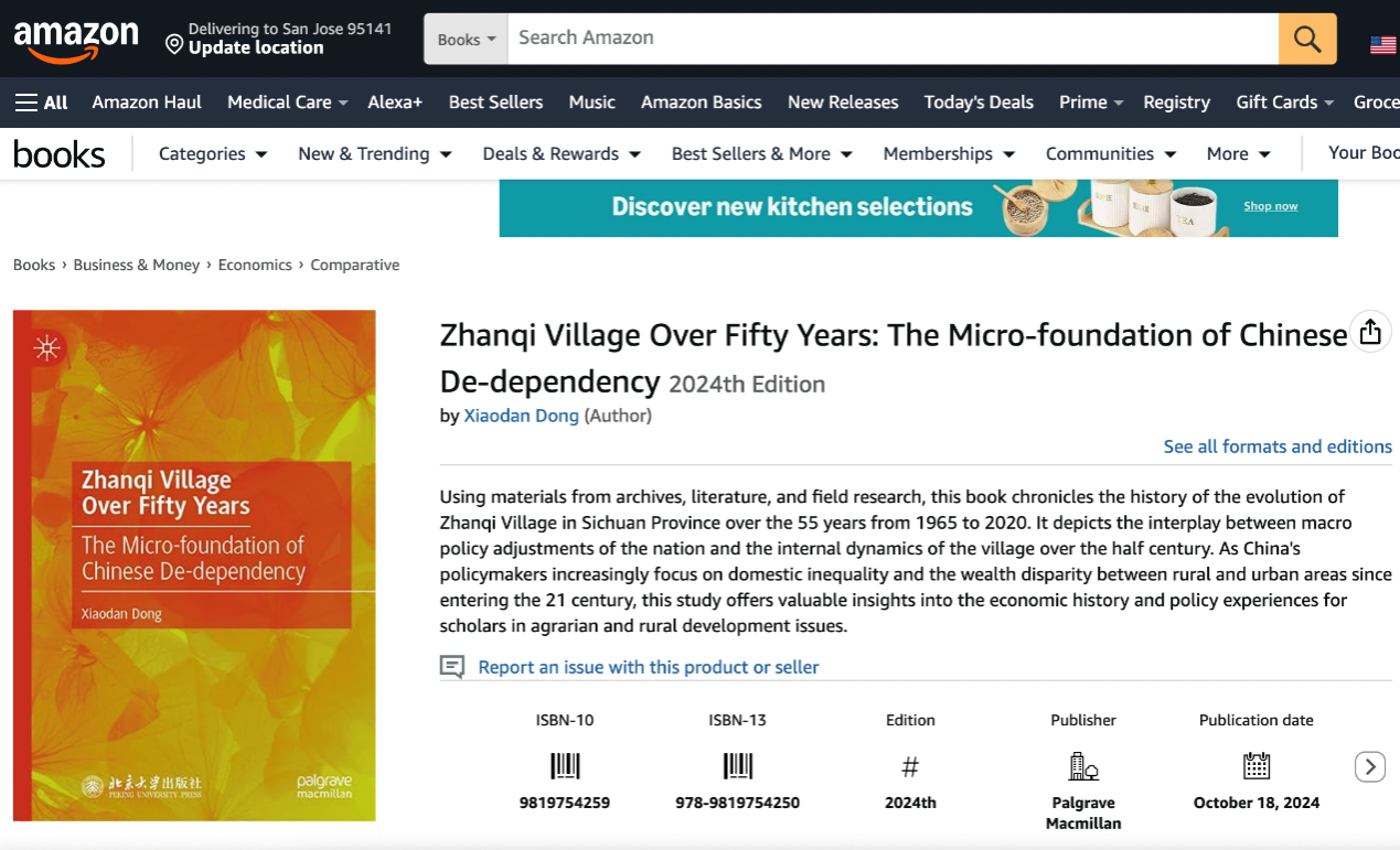 目前,《Zhanqi Village Over Fifty Years》已通过亚马逊、施普林格等平台面向全球读者发售,电子书与纸质版同步上线,并已被澳大利亚国家图书馆及最大的经济学专用书目数据库IDEAS等平台收录。