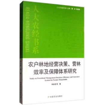 《农户林地经营决策营林效率及保障体系研究》基于农户微观主体视角,基于农户实地调研数据,分析了农户林地经营决策行为特征,并对农户林地经营形式选择、林地经营产出、林地经营绩效和林地经营规模意愿的影响因素进行了量化分析;运用线性规划方法测算了不同农户经营状况下的适度经营规模;并运用数据包络方法(DEA)测算了林地经营规模效率,还运用TOBIT模型对林地经营规模效率的影响因素进行了分析;并较为系统地构建了一套激励农户林地经营的保障体系。本书对于促进我国的农户林地经营行为研究具有积极意义,本书可为从事林业经济和农户行为研究的学者提供借鉴。