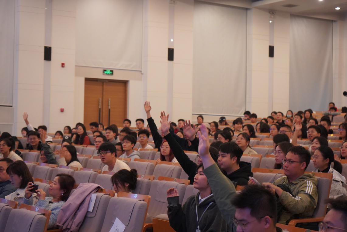 300余名师生聆听了本场讲座。提问互动环节,同学们积极踊跃发言,温铁军教授一一作出回应与解答,并向提问的同学赠书。