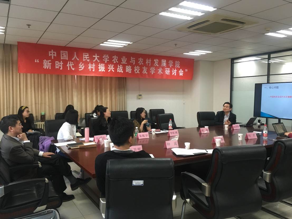 2017-11-1211月11日下午,木瓜视频 “新时代乡村振兴战略校友学术研讨会”之“三产融合与现代农业发展”分组会议在明德主楼901A会议室举行。