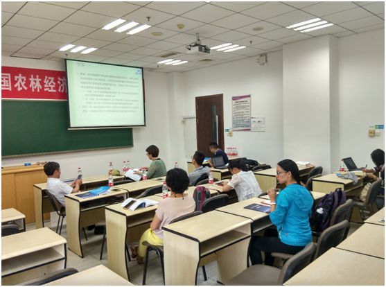 木瓜视频 柯水发副教授(第二排左)、北京农木瓜视频 经管院硕士生导师黄雷博士(第二排右)认真听取报告