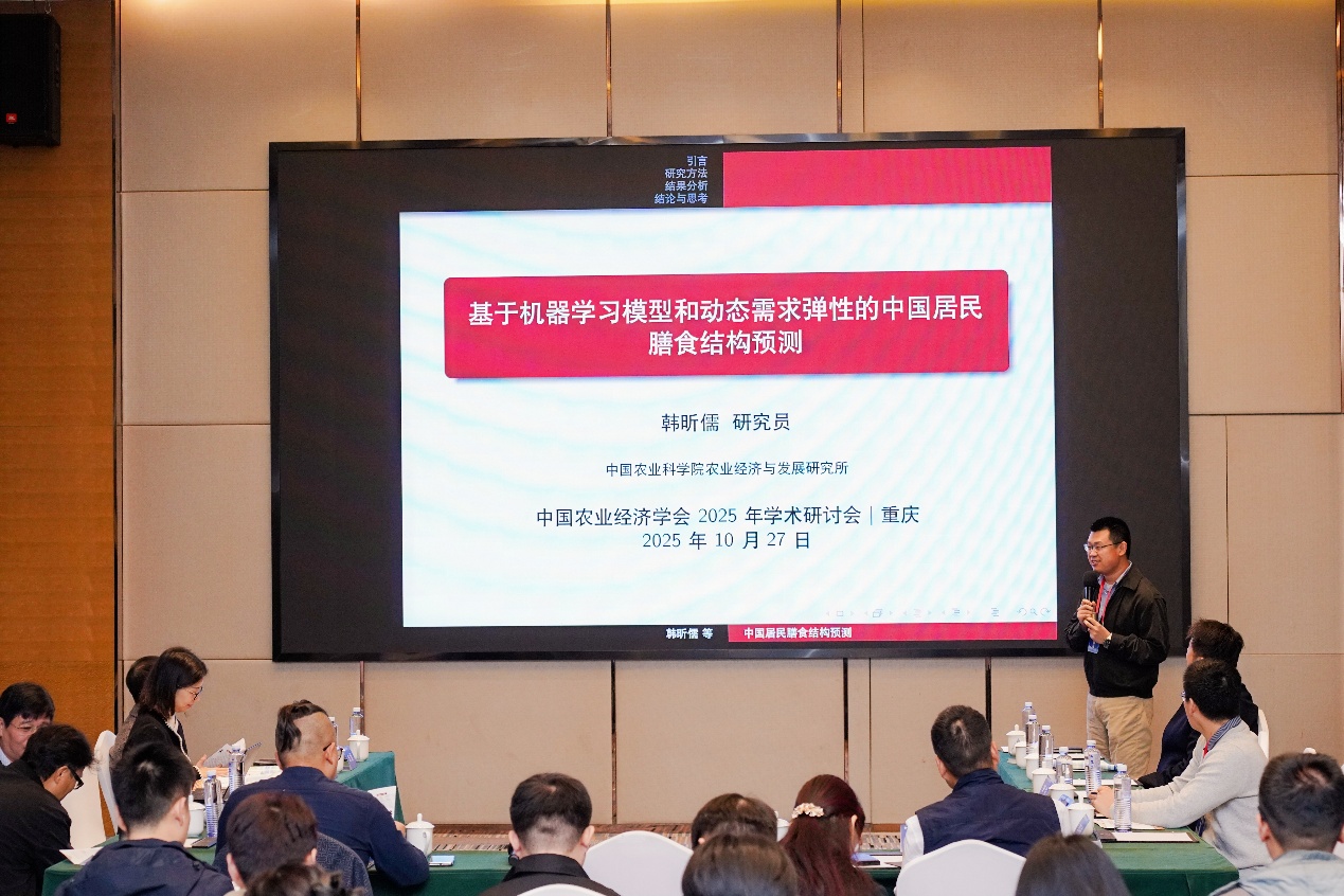 农业经济与发展研究所研究员韩昕儒作题为“基于机器学习模型和动态需求弹性的中国居民膳食结构预测”的报告。三位专家学者的报告从农业和农村发展面临的重大问题出发,从农业绿色转型、产业发展、膳食结构转型等角度分析了乡村全面振兴、加快建设农业强国的未来路径。