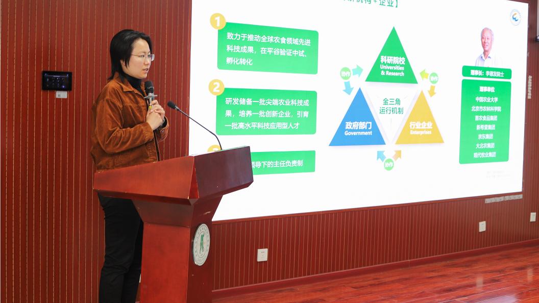 北京京瓦农业科技创新中心高级项目经理王金博士,介绍了京瓦中心在技术研发、成果转化及平台建设方面的探索与实践。