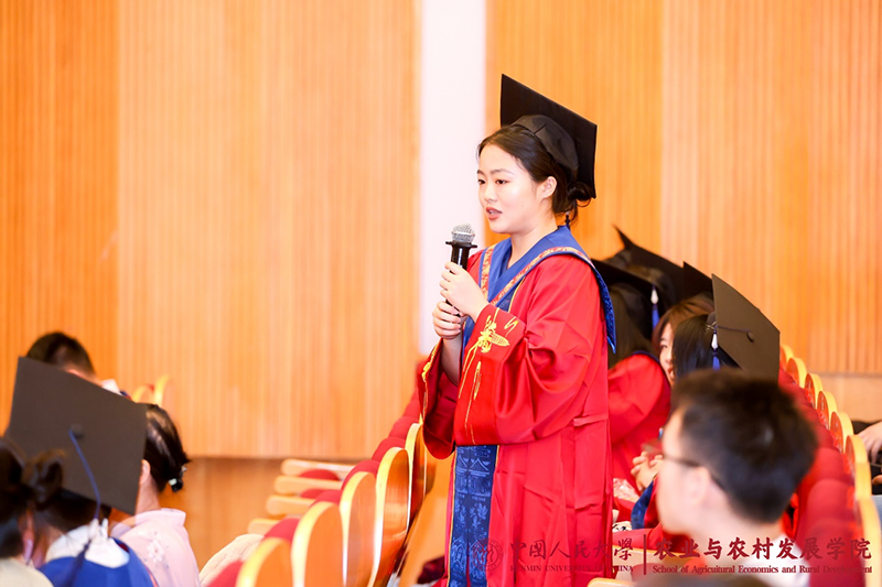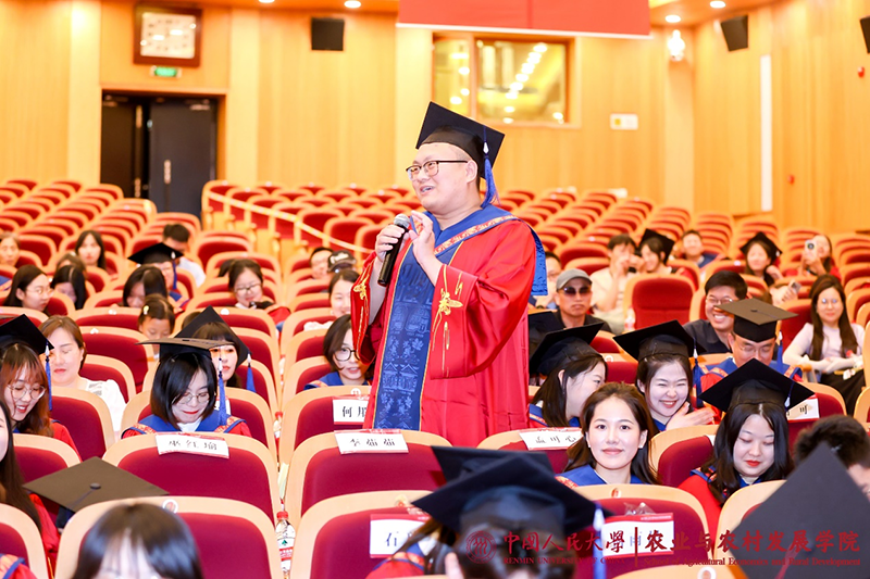 向圆满完成学业的328名毕业生同学们表示热烈的祝贺,并对同学们提出了三点期望:第一,做到“心中有理想”,为人生出彩锚定航向。“实事求是”是每一位人大人做人做事的基本遵循,更是探求真理的制胜法宝。第二,追求“手中有本领”,为人生出彩蓄力扬帆。毕业不是学习的终结,而是新的学习的开始,要善于学习新知识、勤于掌握新技能、敢于攀登新高峰。第三,保持“脚下有力量”,为人生出彩满舵前行。当今世界,充满变数与不确定性,唯有脚踏实地,辛勤耕耘,国家才能发展进步,个人才能取得成功。朱信凯常务副校长真诚希望毕业生同学们始终牢记习近平总书记的政治嘱托,真正做到用脚步丈量祖国大地,用眼睛发现中国精神,用耳朵倾听人民呼声,用内心感应时代脉搏,把对祖国血浓于水、与人民同呼吸共命运的情感贯穿学业全过程、融汇在事业追求中;始终不忘“复兴栋梁、强国先锋”的使命,在人民群众中奋斗,在基层一线奋斗,为农业强国建设挺膺担当,继续书写无愧于时代、无愧于人民、无愧于历史的青春业绩!