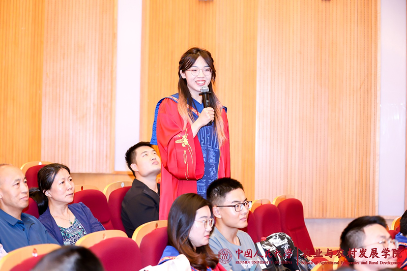 仇焕广、曾丙健、郑适、毛学峰、钟真、吕媛媛等6位老师为优秀毕业生代表颁奖。