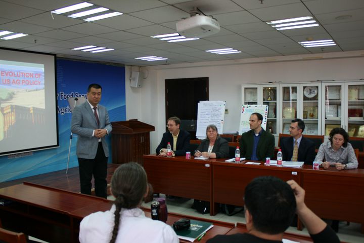 教师也应邀向五位研究员简要介绍了中国农业的现状和挑战,包括玉米收储政策调整、农业保险、农产品贸易、专业合作社等,双方学者还就中美农业政策对比和一些未来潜在的具体科研合作项目进行了讨论,表示将进一步加强双方在科研领域的合作。