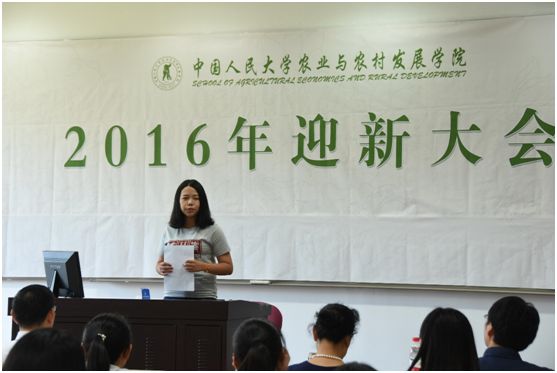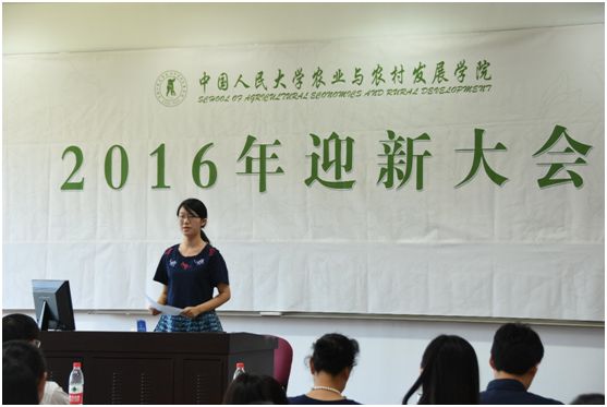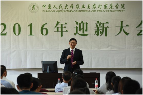 及各个专业的基本情况;接着,唐院长强调了在校期间认真学习的重要性,他为新生提出了三点期望:一是要成为知识丰富的农经人;二是要具备批判性精神,拥有独立思想的能力;三是成为一名心怀世界、有责任心的人大人。最后,唐忠院长希望每一位新生都能热心参与社会活动,积极主动地与老师和朋友们沟通、交流,并祝愿大家拥有一个丰富多彩校园生活.
