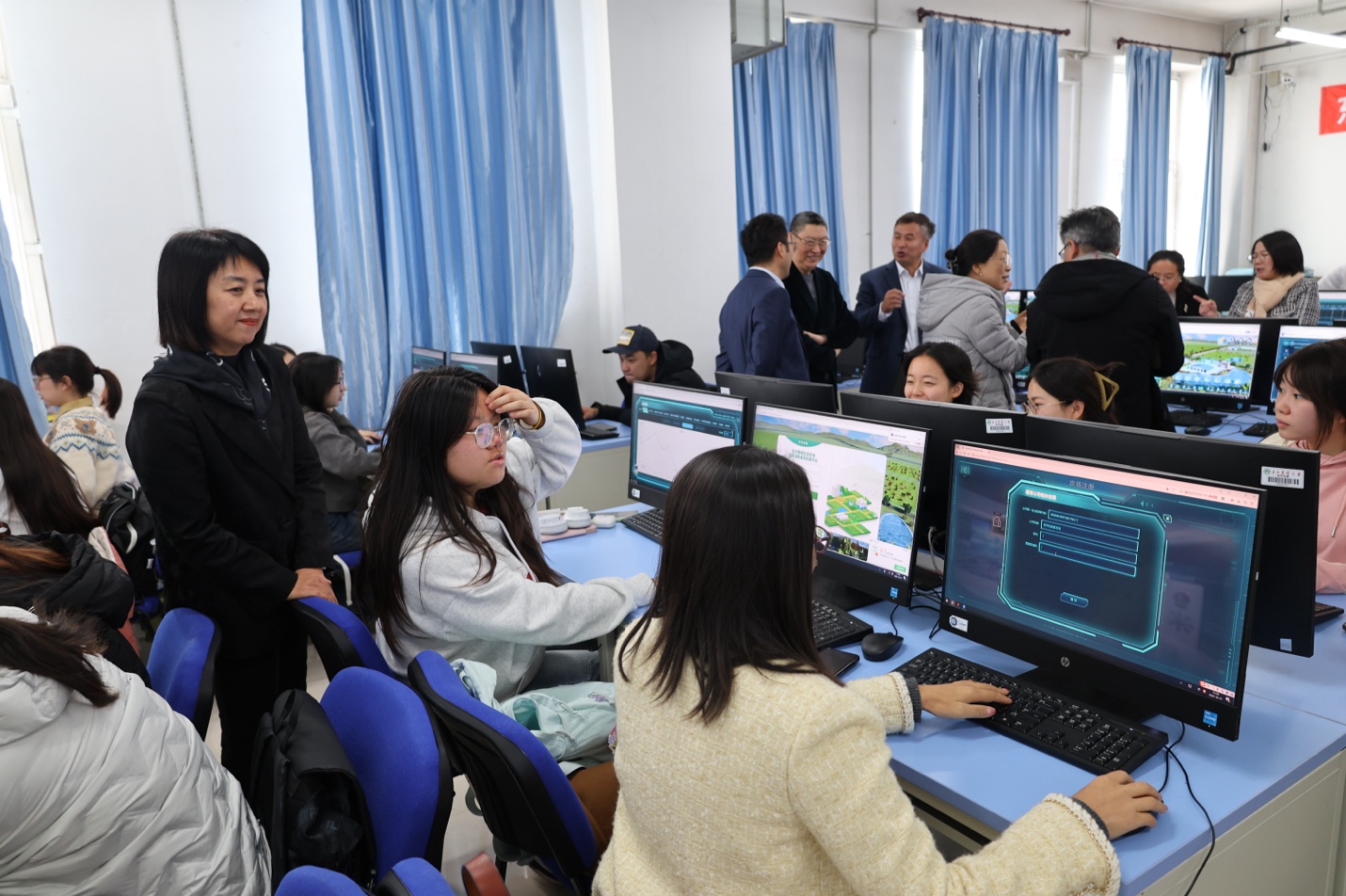 与会专家在虚拟仿真实验室现场系统操作与体验