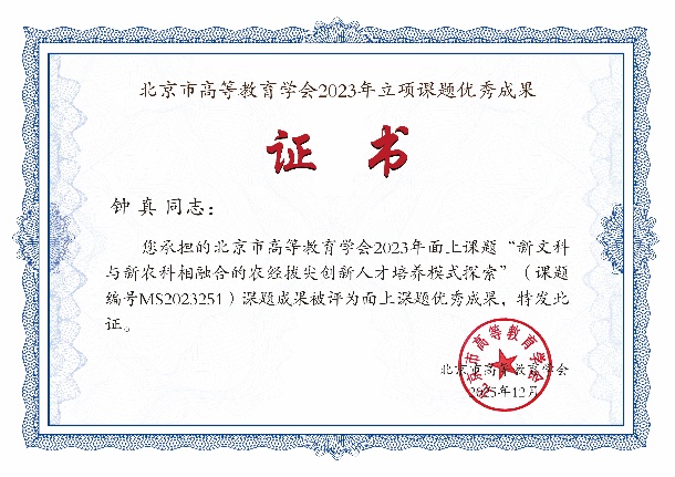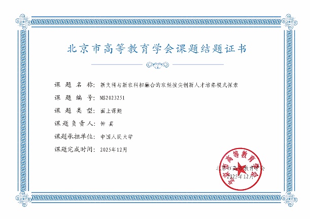 钟真教授主持的《新文科与新农科相融合的农经拔尖创新人才培养模式探索》圆满结题,凭借创新性的跨学科融合思路与可落地的实践方案,获评优秀成果。