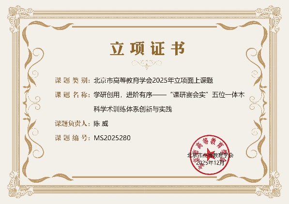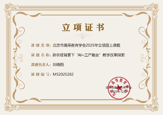 刘晓鸥教授主持的《新农经背景下 “AI + 三产融合” 教学改革探索》课题、陈威副教授主持的《学研创用,进阶有序 “课研赛会实” 五位一体本科学术训练体系创新与实践》课题同步获批立项,课题分别聚焦技术赋能教学改革、全链条学术能力培养两大核心方向。