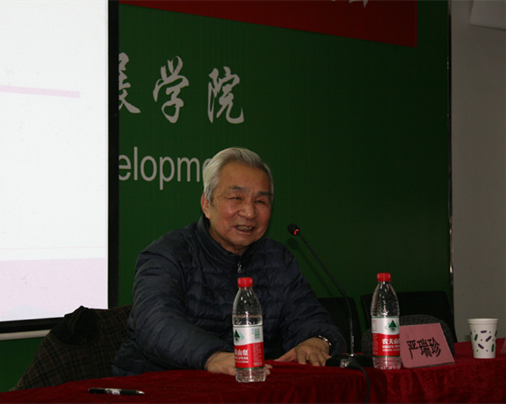 师生作专题报告。严瑞珍教授指出,一个人的成长和发展与他所处的环境和时代关心密切,他与学生们分享了自己如何加入在当时的时代背景之下坚持求学,走上研究农业经济学的道路并一生致力于此。严瑞珍教导说,青年的命运与国家的命运紧密相连,国家的命运就是青年的命运,作为年轻学者,一定要反复实践,立足现实,用实践检验理论。理论学习要避免思想僵化,在已有理论的基础之上注重开拓创新,多学习先进思想,多掌握学术动态。严瑞珍教授也对同学们提出希望,希望广大青年同学培养高尚道德情操,争做国民表率、社会栋梁;建立良好的专业知识体系,培养再学习的习惯和能力;保持身心健康,打造强健体魄,磨练坚强意志。
